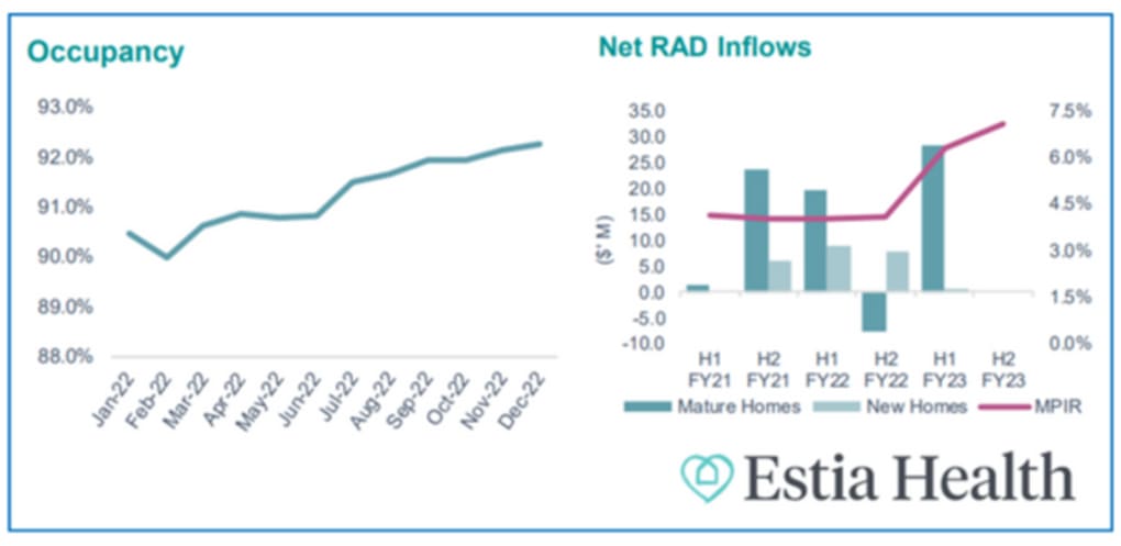 Occupancy is currently sitting at around 88% across the sector, putting Estia Health well ahead of the average.