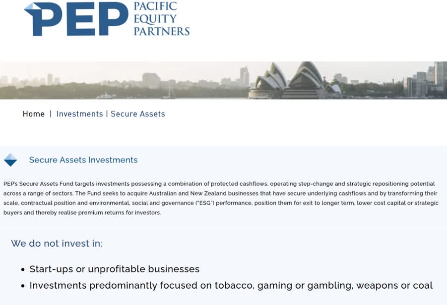Their interest is mature businesses – and their aim is primarily to triple the value of the business within five to seven years before exiting with their returns. As you can see below, PEP does not invest in unprofitable businesses.