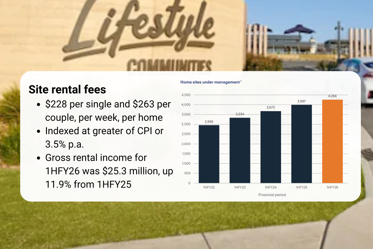 - As at 31 December 2025, Lifestyle Communities had 180 unsold completed homes, which is down from 257 reported at 30 June 2025, and represents a 30% reduction in the number of inventory homes completed and not sold.