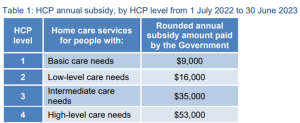 Estimated wait times for people entering the wait list for all levels of home care was between one and three months as 28 February 2023. There were just over 30,000 people seeking a Home Care Package who had never been offered a package. There were nearly 38,000 people waiting for a HCP at their assessed level of need at the end of the December quarter.