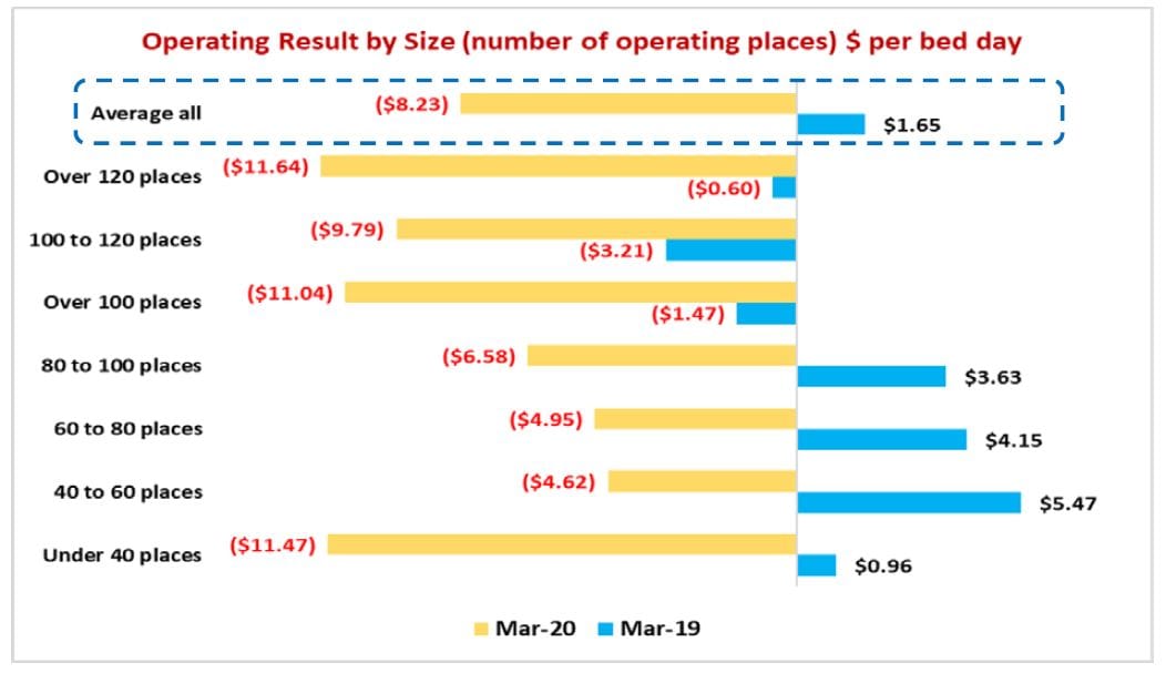 Alarming figures that do not even represent the full financial impact of the COVID-19 pandemic. The accounting firm’s latest aged care financial performance survey for the March quarter has shown 60% of aged care homes recorded an operating loss for the nine months to March, while 34% recorded an EBITDAR loss (cash loss) for the same period. The report concludes that without specific targeted funding and structural reform, providers will be forced to close services and further necessary investment in the sector will be put at risk. It is critical to remember that – as we reported here two weeks ago – StewartBrown expanded the list of respondents to 44% of aged care beds in Australia (201 approved providers, 1,100 aged care homes and 47,000 Home Care Packages) – including the larger listed entities and larger For Profits who are not typically included in their results. The worst is also yet to come. These numbers only reflect the start of the pandemic in March – so the true extent of the pandemic’s impact won’t be revealed until the June quarter results are in.