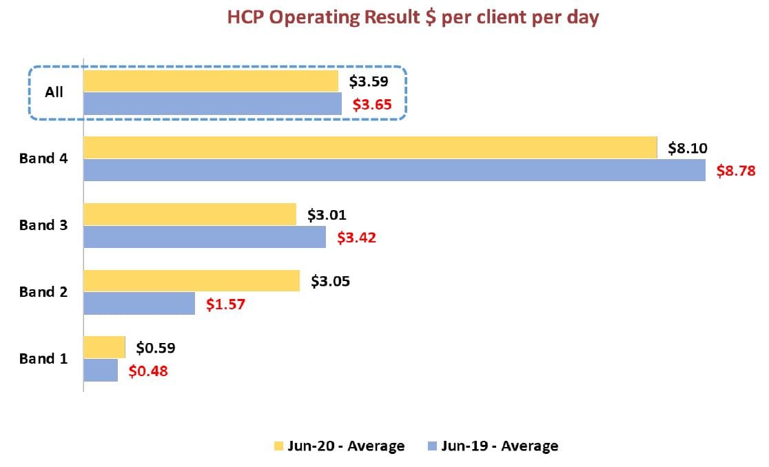 The average operating result also declined by $2.76 pcpd for the nine months from October 2019 to June 2020, while the average unspent funds per client increased by $1,846 per client (to average $8,841 per client).