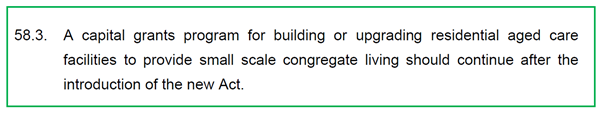 The Royal Commission Proposed Recommendations 57 (above) and 58 (below), refer to the ‘small home’ model and ‘small scale congregate living’.