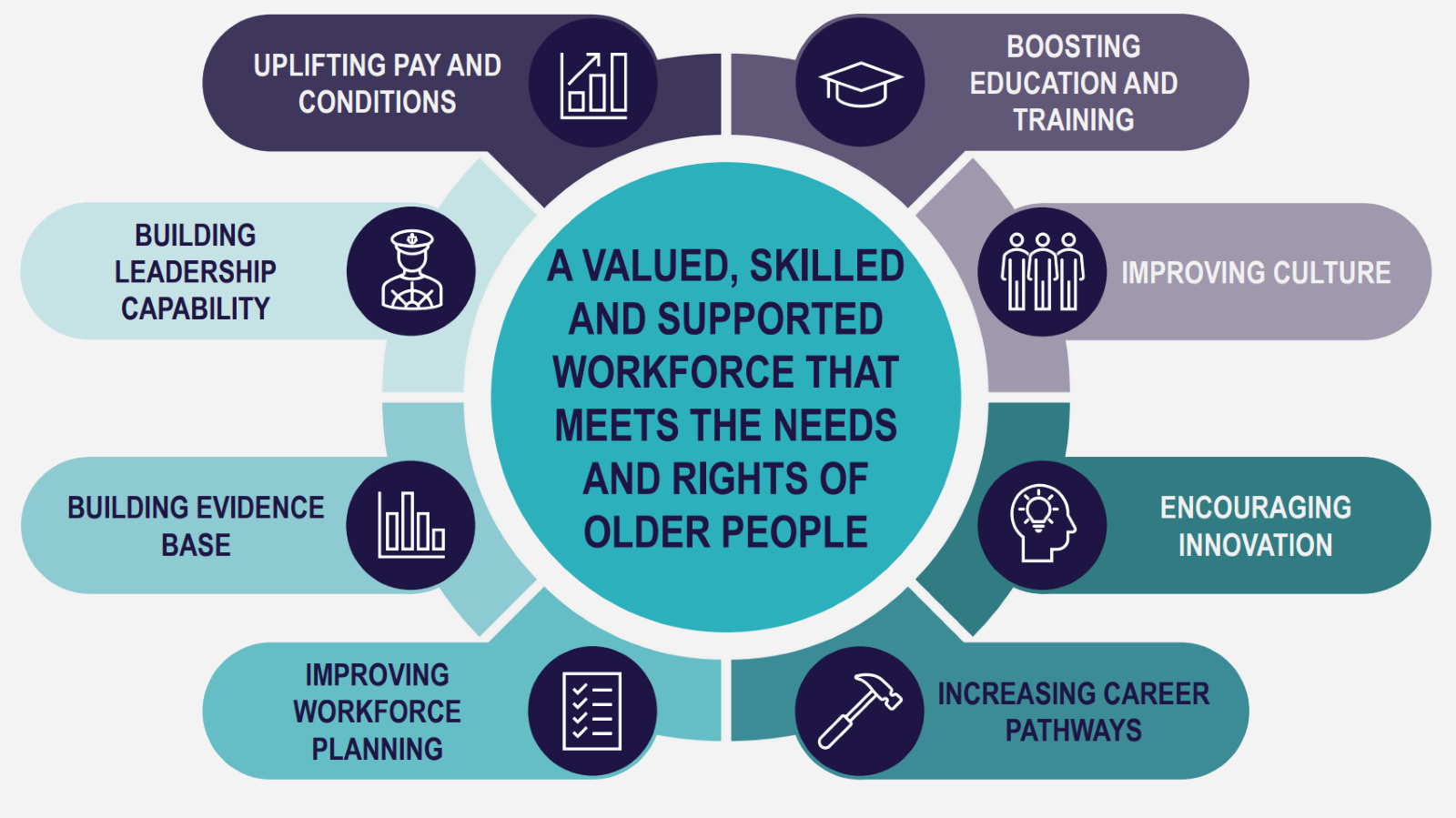 The Minister also announced a new professional framework aimed at building the aged care workforce, which is based on eight key goals – see below. You can download the framework here.