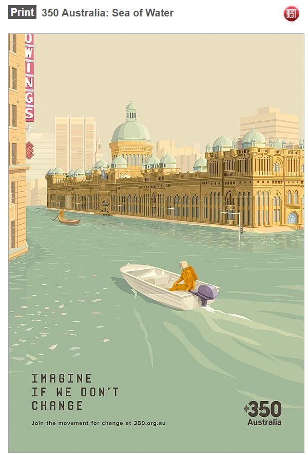 Proving again that Australia can deliver world-class creative, this ad for Sydney Beer was selected as the Best Press Ad from around the world in New York last week. You download the Sydney Beer temperature app which is linked real-time to the daily Sydney temperature. As it rises so does the percentage discount you can get when you next buy a Sydney Beer. Click when you think the temperature is highest to lock that discount in, up to 49° or 49%. Check the video HERE. The discount is only available at five Sydney (trendy) venues. But it will have people talking – and linking Sydney Beer to hot days. What can we do similar in retirement village are aged care sector that is as engaging? The ad agency was BD. Check them out HERE. Interestingly there was a second press ad picked in New York – this one for 350 Australia. Agency: M&C Saatchi..