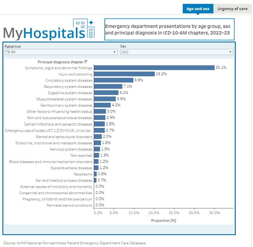 (To give some insight into why older people present to hospital, check out the chart below, supplied by Bev Smith.)