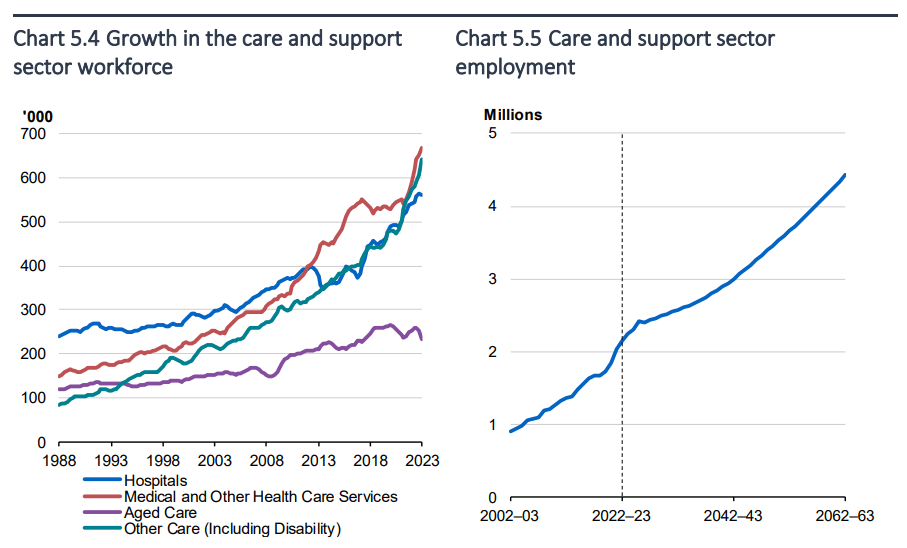 The SOURCE: The share of total employment in the health care and social assistance sector is forecast to be 16.7% in 10 years’ time. Bolstering the care workforce, which includes aged care, should be a national priority.