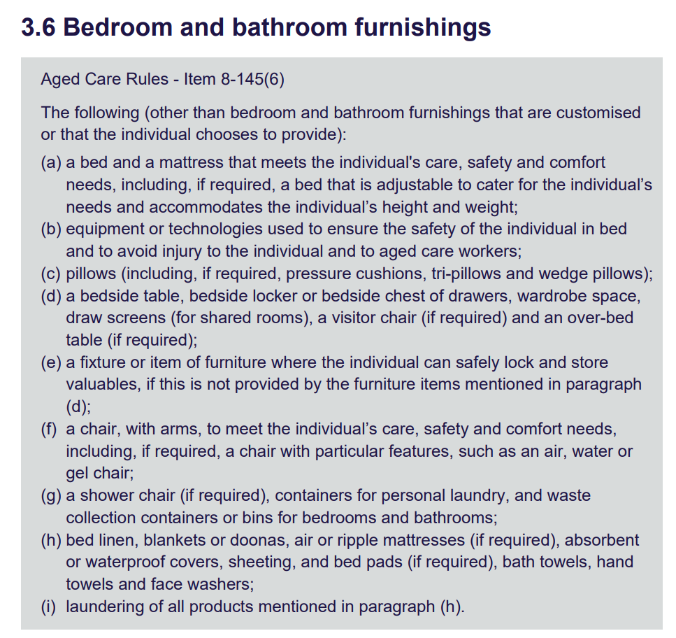 “Aged care providers are required to deliver care and services in accordance with the Aged Care Act and Rules, and the Aged Care Quality Standards.