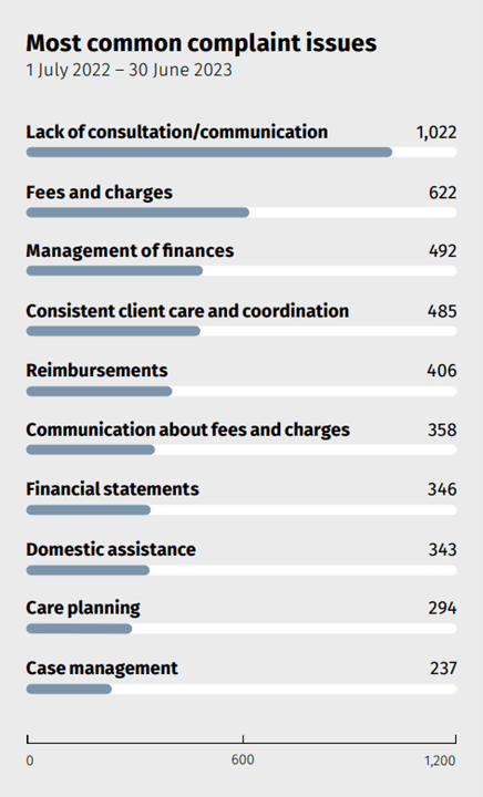 ‘Fees and charges’ are regularly the second-most-complained-about issue in home care – behind ‘lack of consultation or communication’, which regularly tops the list.