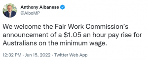 Despite a Royal Commission recommendation to fix indexation for aged care, the Federal Government did not take up the measure – the 2021-22 indexation was only 1.1% despite a 2.5% increase in the Award Wage and a 0.5% increase in the Superannuation Guarantee last year. The FWC is also weighing up the unions’ 25% wage claim for aged care workers, but as we reported last week, the Commission has given the new Labor Government until 8 August to make new submissions. As a result, the FWC is now not expected to hand down a final decision until 2023.