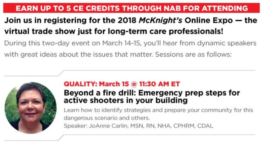 We stumbled across this promotion for an online training module to prepare you for an armed killer in your residential aged care facility.