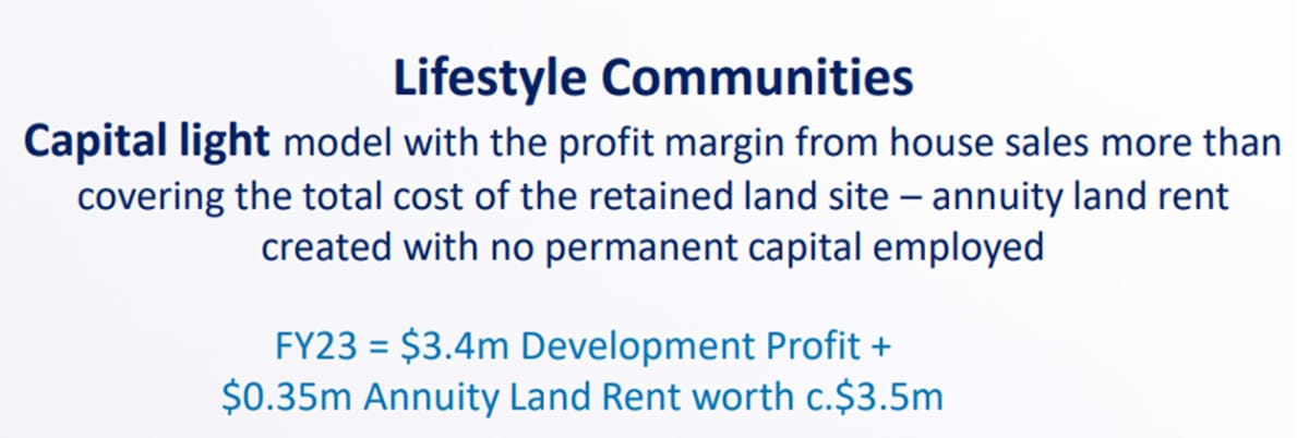 The company states land lease is attractive in that once established, it is a capital light asset that generates weekly net income.