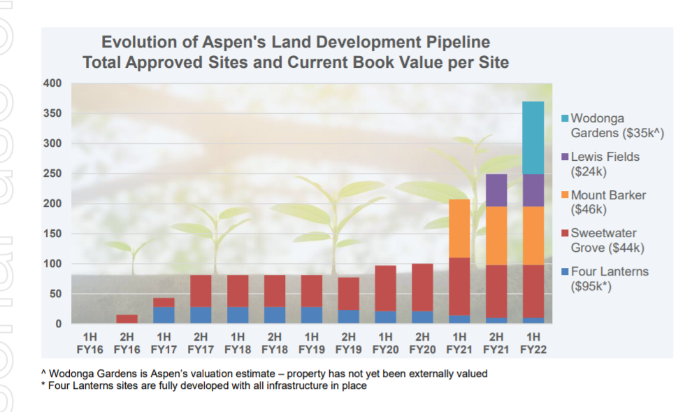 Aspen expects to develop and sell at least 10 houses per year, with holding deposits for eight new homes. The interesting side note is that the Gannon family has also entered the land lease market, with two LLCs in Moonta Bay and Ballarat.
