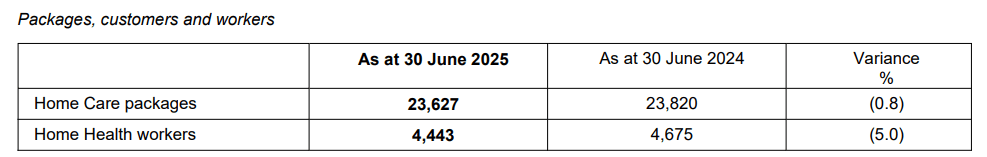 The company said it was operating in a "dynamically adjusting environment" given the deferred release of new Home Care Packages and the delay to the commencement of the Support at Home reforms. As a result, Home Health saw a decline in Home Care Packages under management and a decline in the total number of Home Health carers as of the end of the financial year.