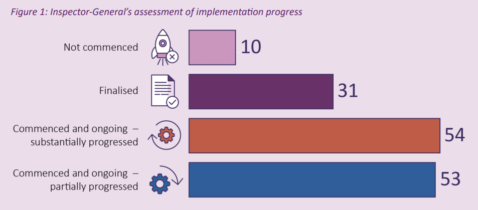 The Inspector-General will work to highlight obstacles to achieving the Royal Commission's aims and to ensure there is a path to achieving the goals.