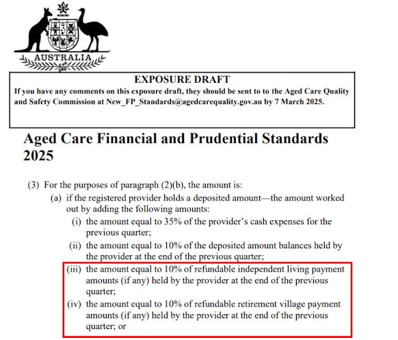 As we revealed last week, residential aged care providers that operate independent living units (ILUs) and retirement villages will have to retain 10% of ILU and retirement village refundable amounts as liquid funds under new aged care financial and prudential standards proposed by the ACQSC that are due to take effect from 1 July this year.