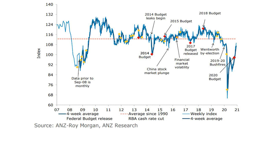 The news comes as the latest ANZ-Roy Morgan Consumer Confidence survey increased 1.8 points to 109.3 – its highest level since November 2019.