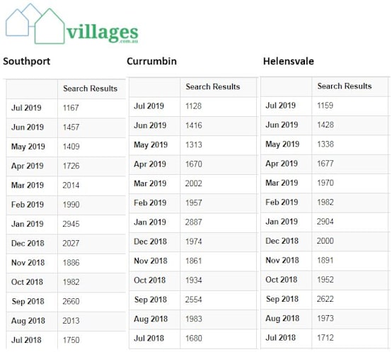 The chart above is a snapshot of potential customers searching for villages by month basically for the Gold Coast, from Currumbin up to Helensvale a distance of 37 km.