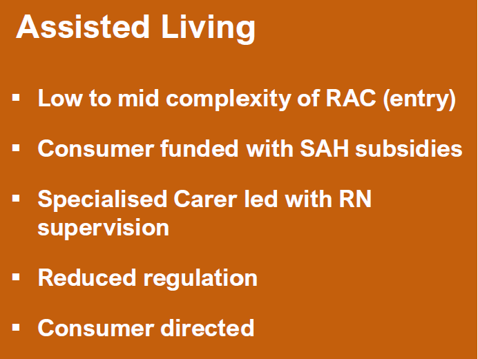 At the moment 200,000 people live in residential aged care homes, with high acuity and dementia. He predicts that just another 50,000 people will increase this number to 250,000 by 2035.