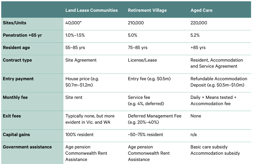 “With aged care homes nearing capacity, retirement villages facing planning bottlenecks, and land lease communities still in their infancy, the need for scalable, affordable, and high-quality seniors living solutions is critical,” it states.