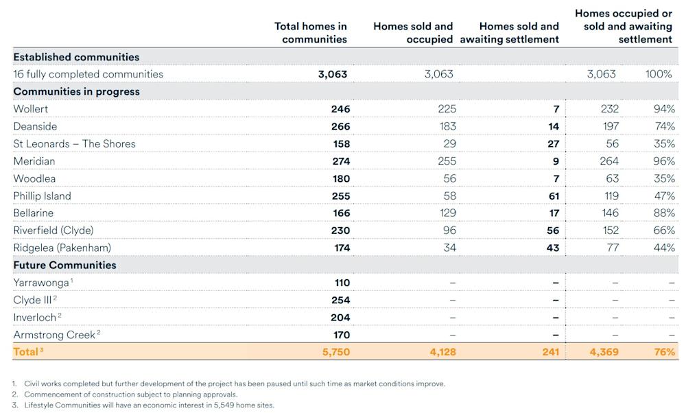 Lifestyle will build 738 homes across its existing communities and has executed contracts to sell four land parcels at Merrifield, Drysdale, Ocean Grove and Warragul, expected to recoup $114.1 million over the next six to 12 months.