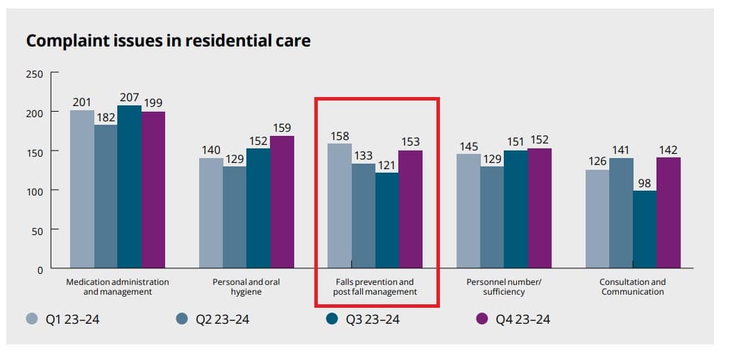 The Sector Performance Report for Q4 2023-24 showed a 26% increase in complaints about falls over the quarter to 153 complaints.