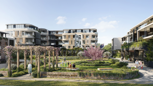 Apartments include a mix of one-, two- and three-bedroom floorplans ranging in size from 55sqm to 176sqm internally, each with their own balcony or courtyard. Off-the-plan purchasers will also have the opportunity to custom design their apartment with add-ons such as heated flooring, wallpaper, pendant lights, and smart home automation systems. In addition, 45 luxury care suites will be set up as three small ‘homes’ with kitchens, dining rooms and lounge areas designed to feel like a family home rather than a traditional aged care facility.