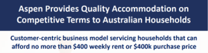 “Our land rents are below the level of which Commonwealth Rent Assistance caps out which improves affordability for our residents, and sustainability and growth prospects for our security holders,” said Aspen, whose joint CEOs are John Carter and David Dixon.