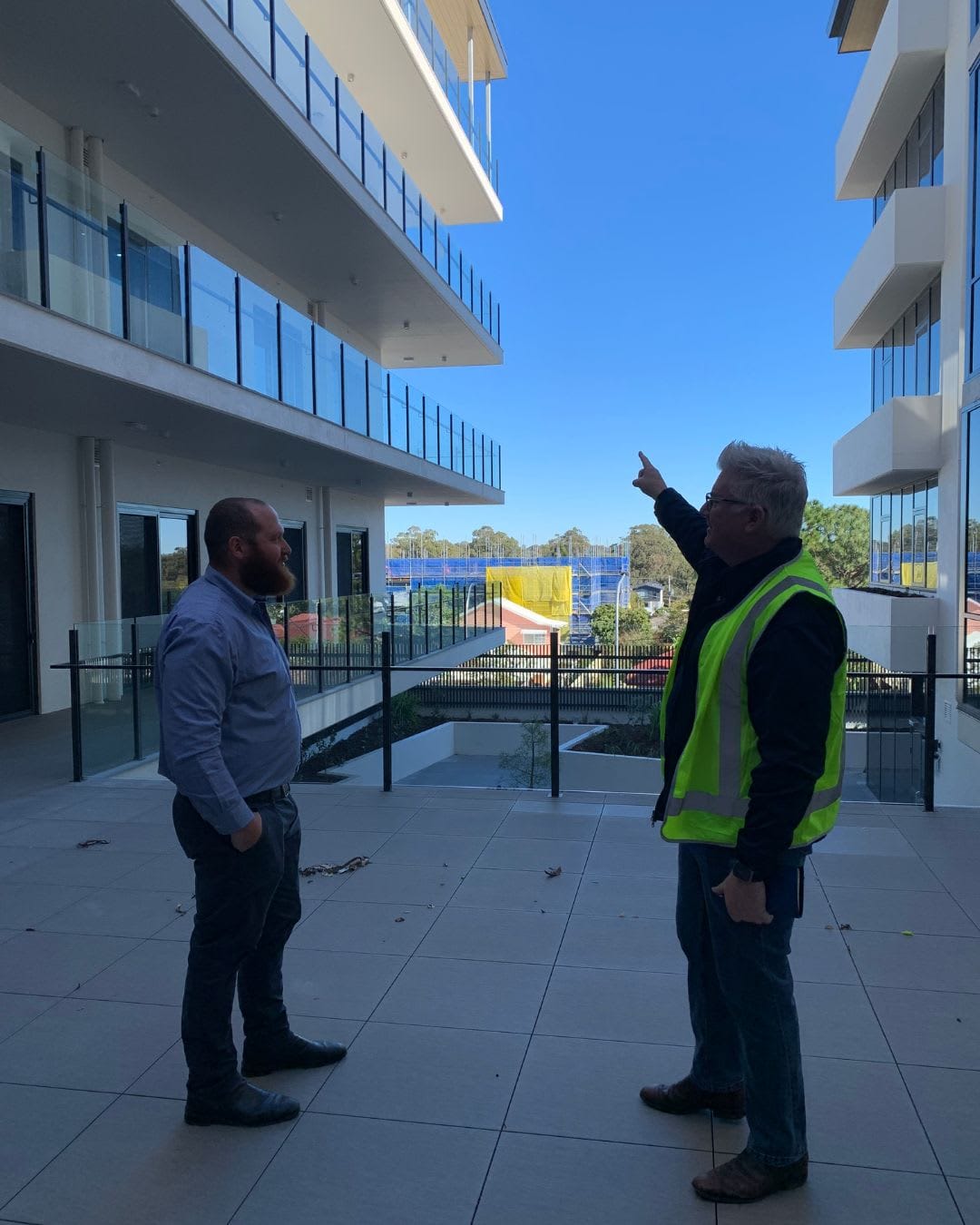 Approximately 40 beds of the home's 151 occupancy could be filled soon after opening due to demand, Brad said. Though the home could be filled within six months, it will open more slowly to allow for staff recruitment, he added. Sorrento has 28 double rooms, and features a rooftop garden, private lounges, balconies and landscaped gardens. A cafe and shops are located on the ground floor. Every room has a private ensuite and kitchenette. The owner-builder has another two homes planned, to be opened in the "next couple of years". With the final preparations underway, CEO Julian Casagrande (pictured left) and Brad (right) had the opportunity to walk through the building. The 6,724sqm site was first purchased by Vacenti after Redland City Council transferred the land to the Redland Investment Corporation in 2015 to help revitalise the town’s CBD. The aged care home was first proposed in 2018.