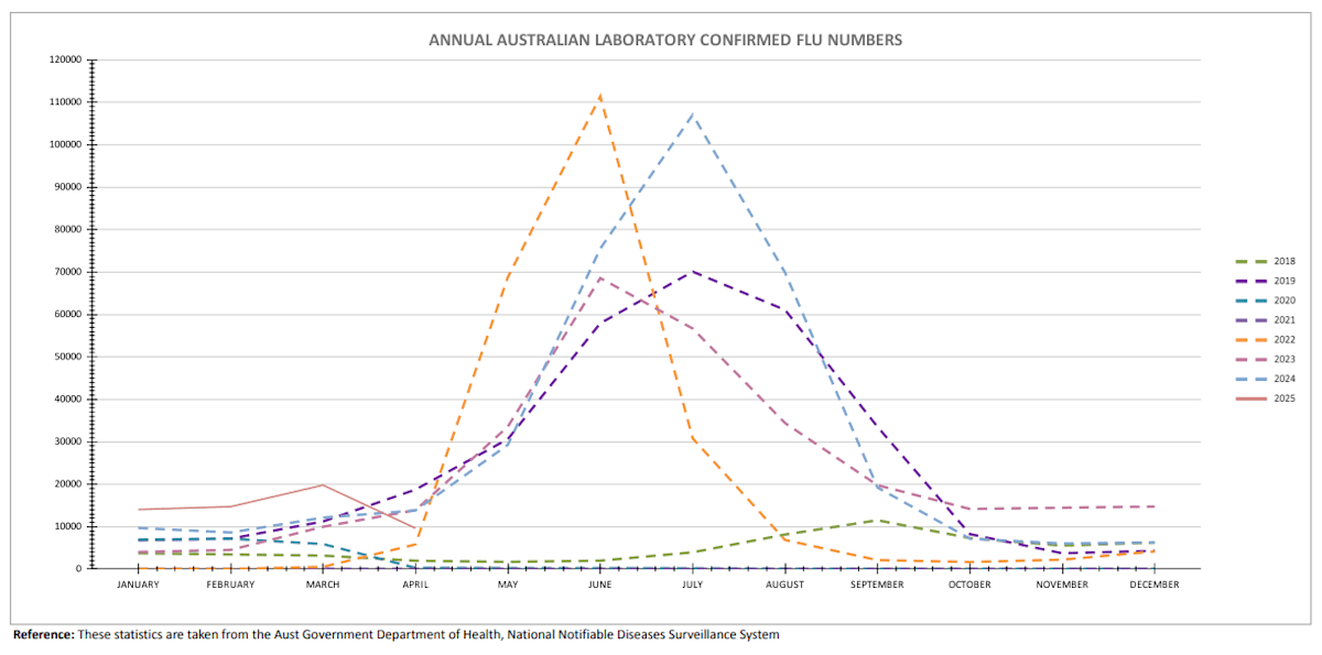 Flu cases for this time of year have been at historic highs, but have eased in the last month.