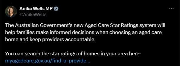 There is "scope for enhancement" of the Department of Health and Aged Care's Star Ratings for aged care, according to management consultants Allen + Clarke, who were awarded the 11-month contract to assess the merit of the initiative launched by Aged Care Minister Anika Wells in December 2022. The consultants found Star Ratings have incentivised improvements to the quality of aged care however stated "perceived inaccuracies" in the staffing and compliance ratings and "negative media coverage" had eroded trust in the system. Some consumers and families were unaware of how the Star Ratings were determined, which could "potentially limit" the role Star Ratings could play in the aged care decision-making process, the consultants report found.