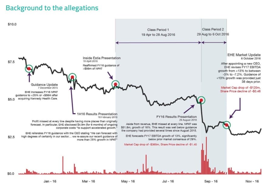 The ASX-listed provider has agreed to pay $12.35 million to settle a class action brought by its own shareholders over market disclosures in 2015 and 2016. Estia Health said in a press release approved by the board of directors on 7 May that a total settlement of $38.4 million (amended from $37.5 million) was approved by the Federal Court. Estia Health contributed $12.35 million, with the balance paid by the company’s insurers. The class action was brought on behalf of investors that acquired shares in Estia Health at some time during the period between 12 August 2015 to 9:52am on 6 October 2016. The class action was led by Phi Finney McDonald, assisted by William Roberts Lawyers, and co-funded by Investor Claim Partner and Litigation Lending Services. It was alleged that Estia’s conduct and lack of information to the Australian Stock Exchange caused its share price to trade at a price substantially higher than the trading price that would have prevailed in a properly informed market (inflated price) which meant persons who acquired Estia shares during the claim period suffered a loss by acquiring the shares at an inflated price.