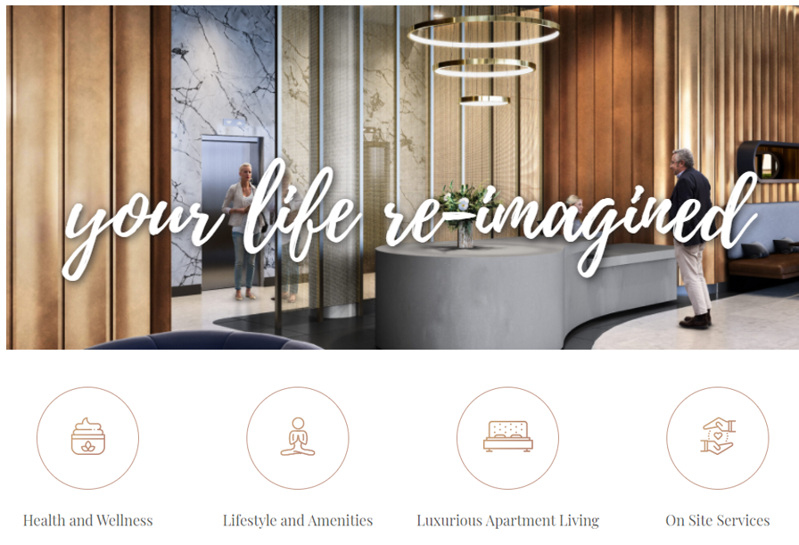 The development is in collaboration with upmarket Perth developer Norup+Wilson. The fact that it will operate under the Retirement Village Act is not mentioned in any of the marketing copy – just in the small print.