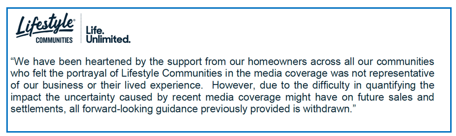 This risk is summarised well by the segment from this Lifestyle Communities notice to the ASX last week.