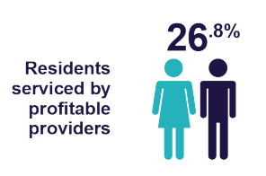 - Only 27% of aged care residents reside with profitable providers – as opposed to 77% for home care recipients.