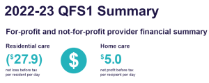 The first Quarterly Financial Snapshot (QFR) of the Aged Care Sector, which contains data for the September 2022 quarter, reveals residential aged care providers lost $27.90 before tax for every resident, every day. The losses includes non-current expenses, such as the write down of bed licences.