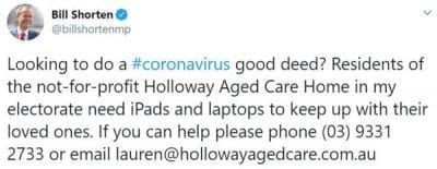 Former Labor leader gives shout out for donations of iPads and laptops for aged care provider in his electorate after second iPad broke