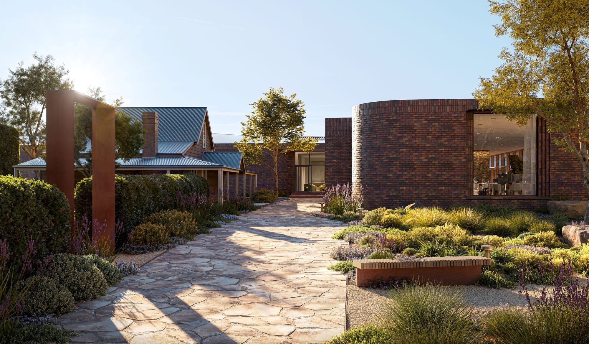 The restoration and modern expansion of the circa-1908 Westport Homestead into a recreational hub, by Melbourne architect Taylor Knights and landscape team Taylor Cullity Lethean, will be completed as part of the first stage.