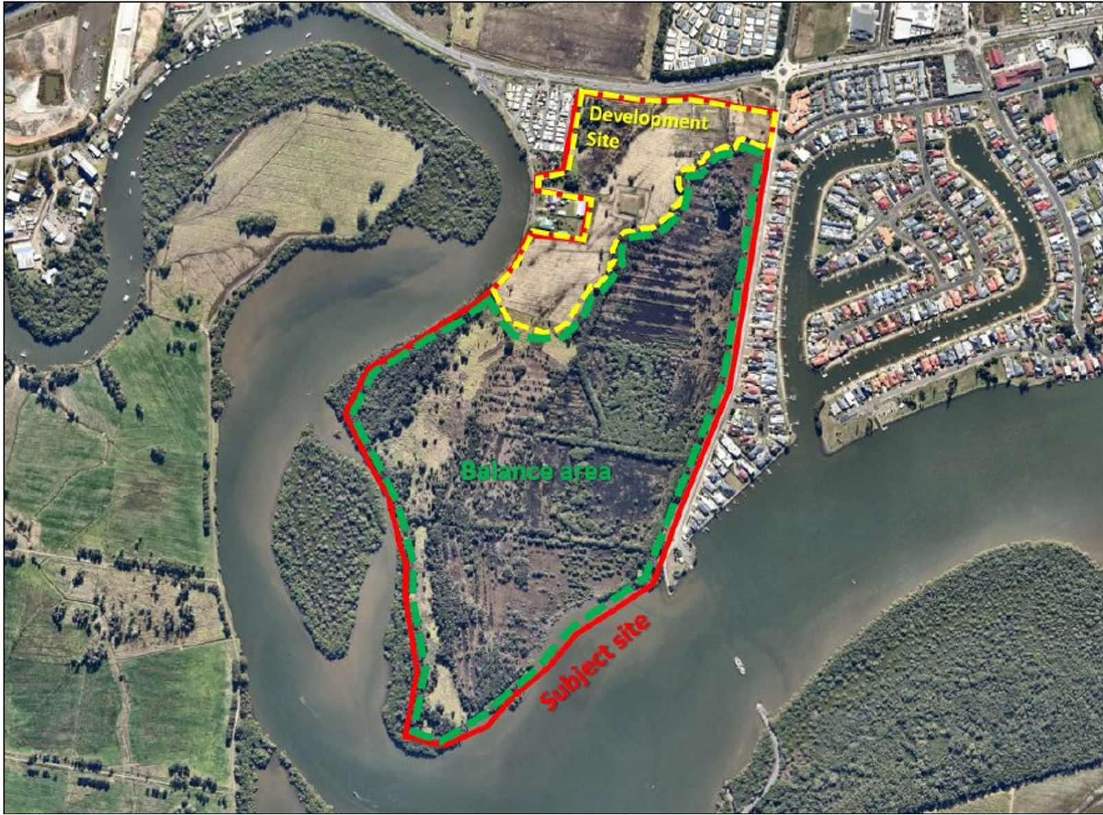 The development area, which includes the proposed built form and earthworks, comprises 10.17ha, with a conservation area of 46.59ha. There are approximately 18.275ha of mapped coastal wetlands on the site, all of which will be protected within the conservation area.
