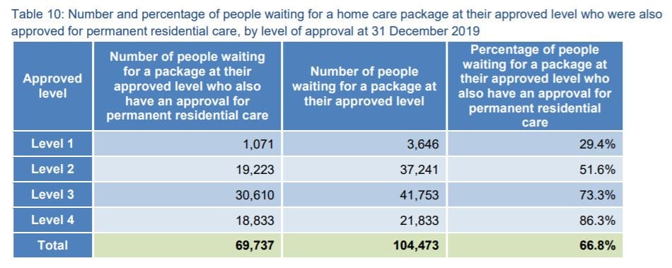 According to the latest data report on HCPs, 104,000 were on the waiting list for their approved HCP as of 31 December 2019 – over 21,000 waiting for a Level 4.