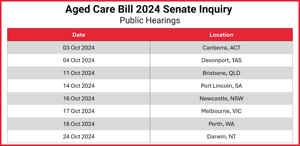 Michael Lye, Deputy Secretary responsible for Ageing and Aged Care said the development of "rules" usually follows the development of legislation. The Department is prioritising the rules for Chapter 4 of the Bill, which contains funding reforms, and aims to release them by mid-October. High level information about the rules will be available by 7 October, next week, so they can be discussed at the Senate Inquiry hearings.