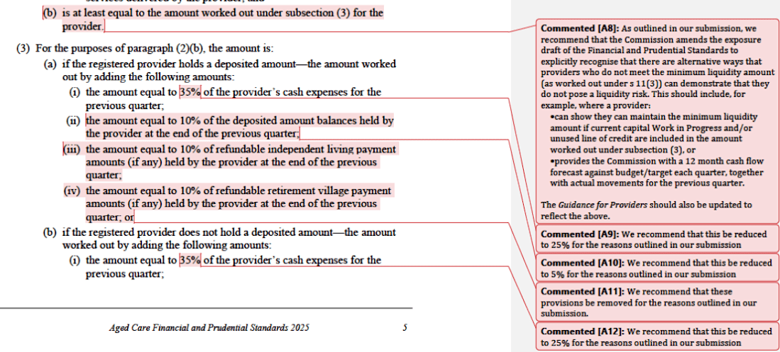 The Aged Care Quality and Safety Commission (ACQSC)'s proposed liquidity ratios should be reduced to 25% for quarterly cash expenses and 5% for quarterly Refundable Accommodation Deposit (RADs) liabilities, and should be removed altogether on refundable amounts for Independent Living Units (ILUs) and retirement villages, Ageing Australia has recommended in a submission published today (Monday 17 March 2025).