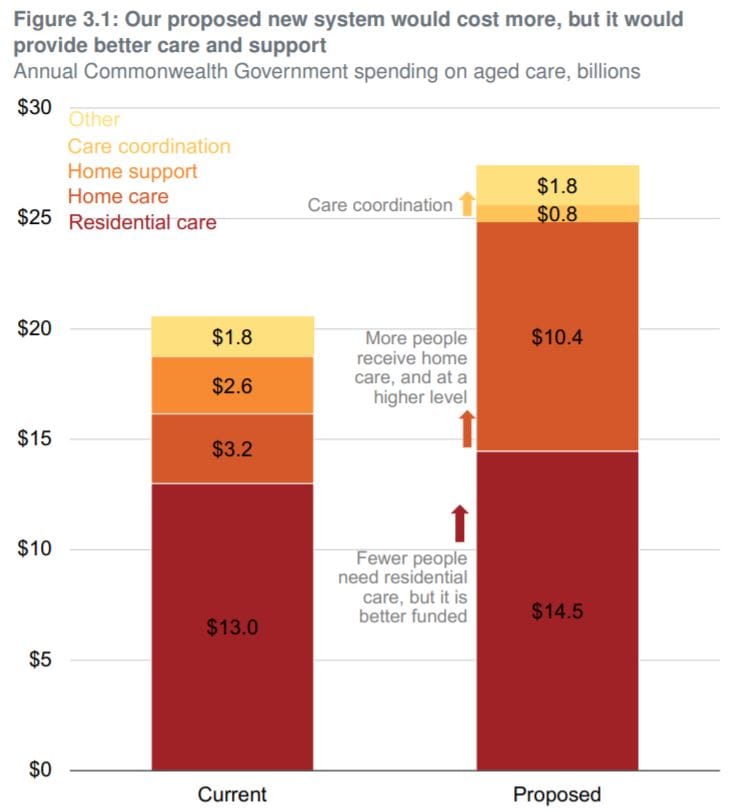 The changes come at a cost however – an additional $7 billion a year or a 35% increase on the current funding. It would still likely cost less than the Counsel Assisting recommendations – following his webinar last week, Health Metrics CEO and founder Steven Strange tells us that their back-of-envelope calculations on their cost reached $30 billion before they stopped counting. Could the Grattan Institute proposals be a viable option then if the Government decides the Royal Commission’s findings will strain the Budget?