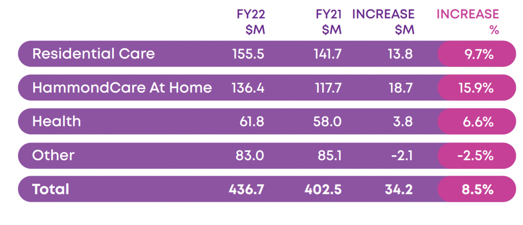 Not For Profit aged care provider HammondCare has posted a net deficit of more than $10 million despite 8.5% growth in revenue, chalked up in part to the impact of COVID-19. HammondCare saw 15.9% revenue growth in its home care services and 9.7% growth in residential care, with total revenue increasing to $437 million compared to $402 million last year; however, its $7 million surplus in FY21 turned into a $10.7 million net deficit in FY22.