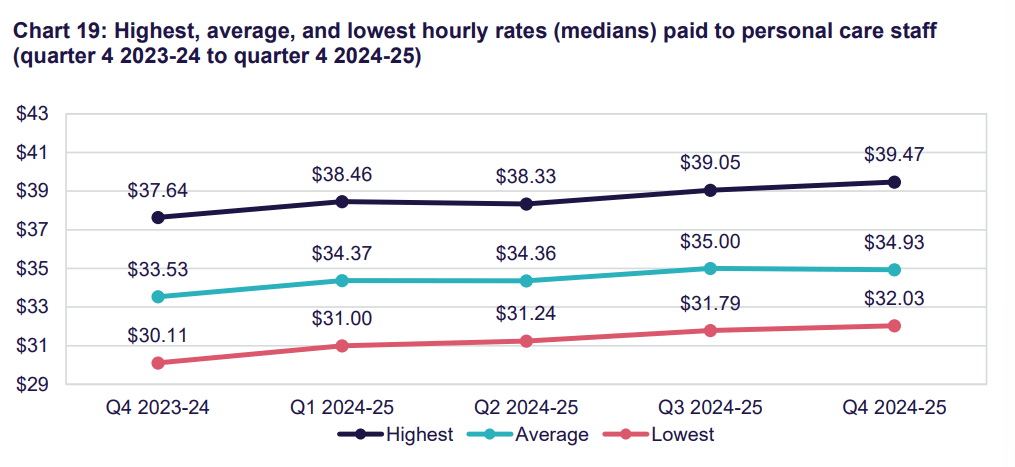 - Personal care workers to $34.93 (up 4.2%).