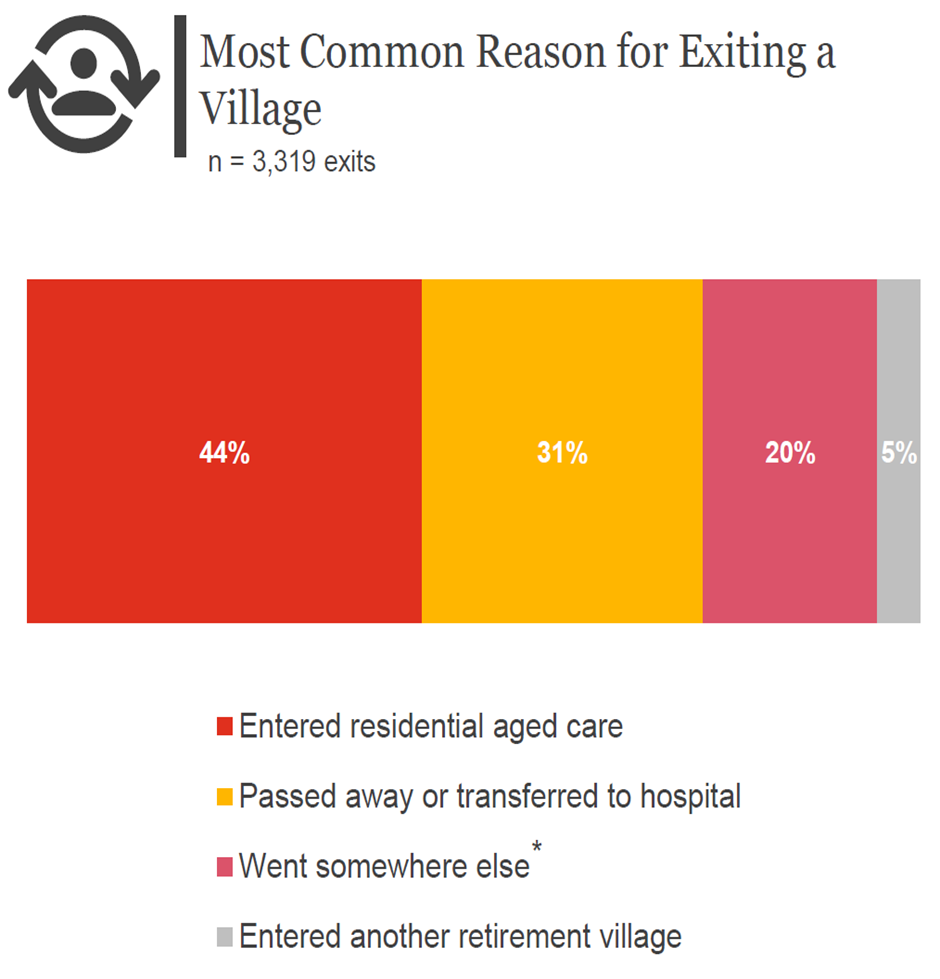 Now check out the Retirement Living Council graph below which says 44% of village move to aged care beds and up to 31% move to hospital to die.