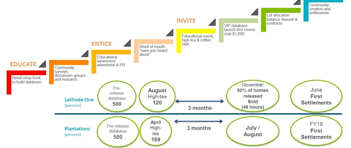 Example, in November 2017, 80% of the homes released at their Latitude One community sold within 48 hours – a sign that the ‘FOMO’ approach is working.