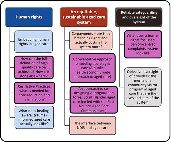 The priority areas have been selected based on feedback the Office has received since it was established in 2023, and from a series of stakeholder forums held to inform the 2025 Progress Report on the Implementation of the Recommendations of the Aged Care Royal Commission. The report is expected to be tabled in Parliament on or before 4 September 2025.