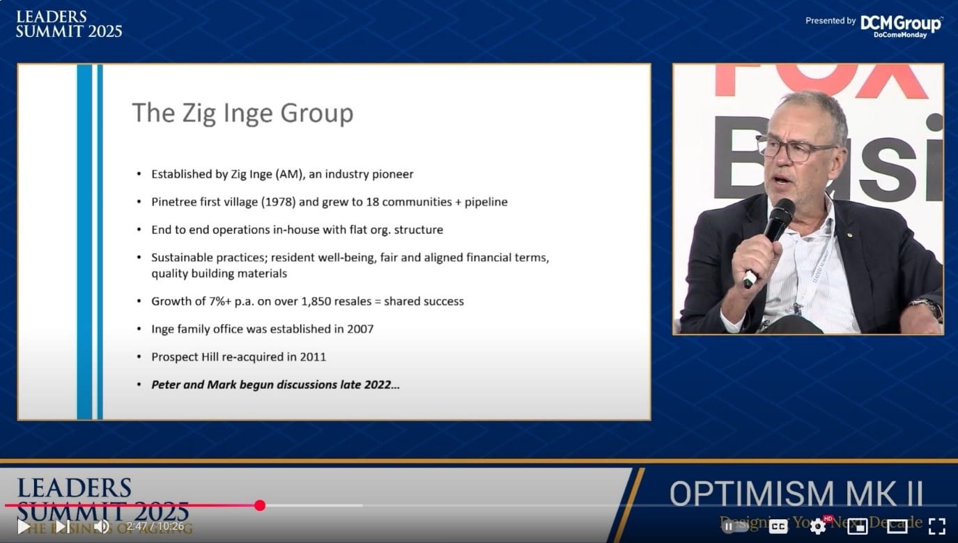 Peter Inge OAM, Executive Chair, and Mark Fay, CEO of the new purpose-led retirement living business IPLiving, revealed at LEADERS SUMMIT 2025 how the new business with capital partner Palisade Impact, started and where it intends to go.