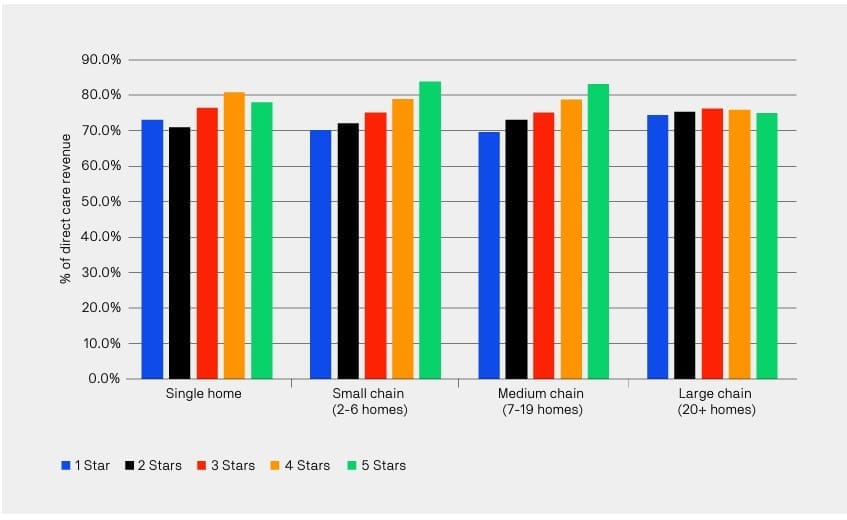 The exception were larger providers, which had a range of costs between 74.4% and 76.4% across all the stars – indicating bigger chains potentially have more efficient staffing models. In short, when it comes to efficiency and compliance, the data says bigger is better. You can read the full report here.